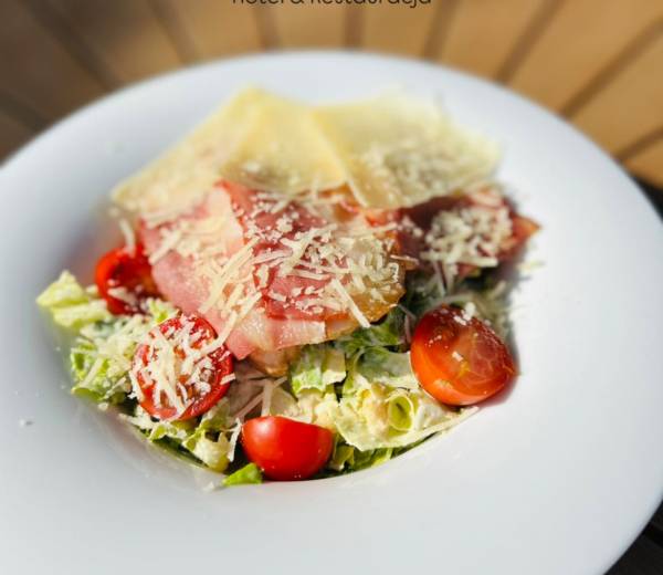 Sałatka jarzynowa w szynce zawijana szczypiorkiem